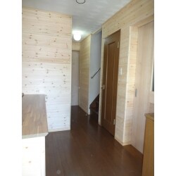壁には無垢板張.天井には湿気対策としてテックス張を致しました.