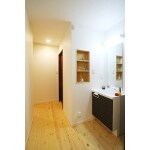 (旧株式会社ハウスドゥでの事例です。)間取り変更により、以前よりもホールを広くすることをご提案。 ダウンライトに照らされたシックな玄関がお客様をお迎えします。