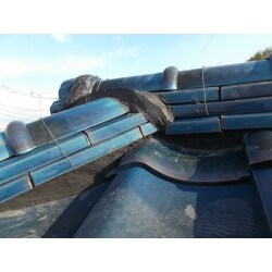 古いしっくいがはがれ、したの土だむき出しになってるので防水上また、強度的にも古い土を取り除き新たにしっくいを詰めてあげた方が良い。