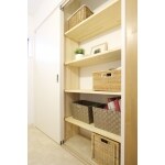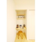 (旧株式会社ハウスドゥでの事例です。)収納の横にはカウンターを造作し、化粧台としてもお使い頂けるように。