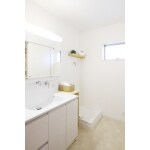 (旧株式会社ハウスドゥでの事例です。)家事室もスッキリ明るい内装に。洗濯用品が置ける棚を造作。