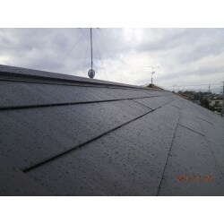 屋根に色褪せがあり、藻の発生も確認できました。屋根のカバー工事をご提案させていただきました。軒天、柱の塗装も一緒にさせていただきました。