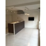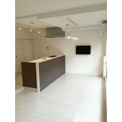 白と茶色を基調とした清潔感かつモダンな雰囲気になりました。 照明もたくさんあり明るくお洒落な空間になりました。