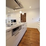 (旧株式会社ハウスドゥでの事例です。)回遊できるアイランドキッチンをご提案し、家事動線がスムーズに。また、安全に配慮しIHコンロをご選定。