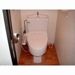 施工後です。ウォシュレットの交換と、床のCFシート貼替え、壁と天井のクロス貼替えをしました。