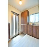 90度移動した、玄関収納と上がり框。 既存のドアと窓の位置はそのままに大容量の収納を設置出来ました。