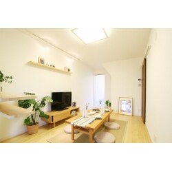 (旧株式会社ハウスドゥでの事例です。)一番陽の光が入りやすい南側にあった洗面室と浴室を移動させ、ご家族が長い時間を過ごされるLDKを配置、水まわりも一か所に。 床材には無垢材を用い、出来るだけ明るく快適に過ごして頂けるようなインテリアをご提案。 壁面に飾り棚やニッチを作り、S様ご家族の写真やお気に入りの雑貨を飾れることができるようにし、住んでからもお家が楽しくなるご提案を。