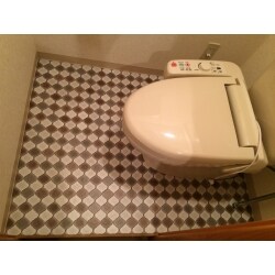 洗面所と一緒にトイレの床も貼り替えました。 現地調査の際に床材の見本帳をお持ちし打ち合わせをした結果スタイリッシュな印象に仕上げました。 施工自体も1日で完了させて頂きました。