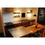 隣のステンレスワークトップとの対比が空間に抑揚を与える提案としました。