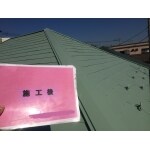 屋根の劣化が進んでおりましたので、 下塗りの段階で、 ヤネ強化プライマー、アレスクールシーラーの2工程で施工いたしました。 上塗りは、 遮熱塗料のアレスクールSi(ミストグリーン)を2回塗りしました。