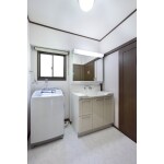 (旧東京ガスリモデリング株式会社での事例です。)お掃除のしやすい、鏡の中も収納になっている洗面化粧台を設置。建具、廻縁等は既存利用で内装替えをいたしました。