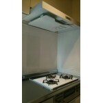 レンジフード・ガスコンロ・キッチンパネルを白で統一。広範囲にキッチンパネルを貼ることで、部屋の汚れも安心。 スリムレンジフードにしたことで圧迫感も無く、色も相まって広く清潔感あふれたキッチンになりました。 ワークトップは熱や汚れに強く、お手入れも簡単な「シルクエンボス」を採用。お手入れ簡単! ガスコンロもホーロートップでラメ入りの為、明るく、汚れも落としやすく人気。