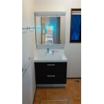 洗面台交換とパネルを周囲に施工、洗面周りの水はねにも安心。
