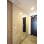 お家の顔になる玄関には、ミラーと大理石調のタイルを施工しました。既存の建具や玄関床タイルの色味をふまえてコーディネートすることにより、統一感と高級感のある素敵な玄関に仕上がりました。