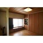 天井まで使えるクロゼットに変更。 クロゼット横に造作棚を作りました。 大切なお母さまのお写真、思い出の お品を飾って頂けます。 フローリングは、朝日ウッドのブラックチェリーを採用。敷目天井は奥様のご希望で残しています。