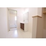1坪と狭かった洗面脱衣室でしたが、収納を設けた少し広めの洗面脱衣室に変身。