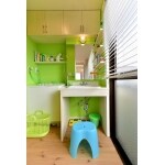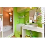 2階の全面リフォームをご希望でした。お客様のご希望をじっくり聞き、リフォームさせて頂きました。洗面脱衣室はポップで明るい色使いとなっています。