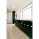 向きを90度回転し、更に対面式の配置に替えたキッチンは、キッチン奥にはたっぷりとしたパントリーを備え充実の収納量です。食洗機にこだわり、ミーレを採用しました。