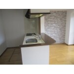 対面式システムキッチンに変更し隣接するリビングダイニングの壁には、調湿・消臭効果のあるエコカラットを、洋間の壁にはアクセントクロスを、リビングの一角にくつろげる場所として和室、お洒落な雰囲気にも仕上げました。