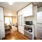 以前は8畳のDKと4.5畳の和室の並びであった場所をLDKとして広いキッチンを実現しました。システムキッチンと共にカップボードもクリナップのもので統一し見た目にもスッキリとシンプルに収まり使い勝手も大変良くなりご満足いただくことができました。