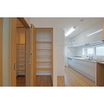 3世帯分の食器や食品を十分に収納できるようにこだわりました。大容量のキッチンキャビネットの他、食品収納庫も設置しました。