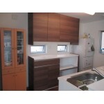 以前のキッチンは収納スペースが少なくお困りとの事でした。システムキッチンの後側の空いているスペースを活用し、間口1800mmのキャビネットを取付ました。カウンターの高さは103cmのハイカウンターキャビネットを、吊戸棚は90cmのロング戸棚をお選びになり収納スペースが一段とアップしました。こちらの商品“キッチンファニチャー”は高さ、奥行きの豊富な組み合わせで様々なスペースに対応できます。