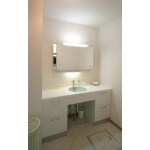 ユニットバスと雰囲気を揃え、白を貴重とした清潔感あふれる洗面スペースとしました。