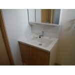 LED照明付のミラーキャビネットは、三面鏡の裏すべてが収納空間。すっきり収納できるので、洗面室が毎日キレイに片付きます。 人造大理石製の洗面ボールは広くなっており、水滴がまわりに飛び散りにい為、お掃除がラクになりました!