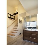 511.三面鏡キャビネットで収納力アップ。あったか床の洗面室。