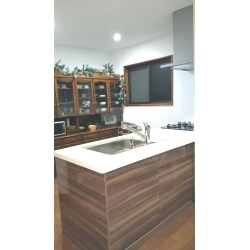 お客様のイメージを実現するため、クリナップのラクエラをお勧めしました。 ワークトップは熱に強く、やわらかな質感が魅力のアクリストン(人工大理石)。衝撃にも強く、破損、変色しにくい大変丈夫な素材です。長く使用しても、キッチンを美しいまま保てます。カラーは3色から選べて、シンクとのコーディネートも楽しめます。 フロアキャビネットはシンプルでデザイン性の高い家具のような扉割りと、機能性を重視した収納力を両立しました。 スライド収納プランのトール足元収納は高さ31cm。2リットルのペットボトルや深鍋なども収納できます。 取手の位置も、楽な姿勢で開閉できる高さに設定しました。 シンプルなデザインはそのままに、人気の食器洗い乾燥機を組み込むこともできます。 美サイレントシンクは図書館並の静かさを実現し、いつもキレイでお手入れ簡単なシンクです。美コートと特殊エンボス加工により、水汚れ、キズがつきにくい高機能シンク。家族が集まる時間をより心地よくする、美しく、静かなキッチンです。オプションでお選びいただけます。