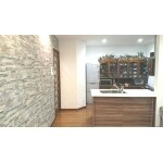 アクセントクロスを貼り、仕切りも撤去し、アイランド風キッチンにしました。レイアウトは同じですが、全く違う雰囲気になりました。