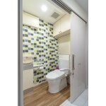 広い廊下に面した余裕のトイレルーム。2つの引戸で閉じれば、独立したプライバシー空間にもなります。