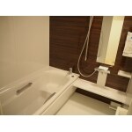 工事をする前よりも40cmほど大きくなり、広々としたバスルームになりました。 TOTOさんのサザナです。 アクセントパネルも濃い茶色にし、和の雰囲気を感じることができます。