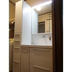 シャワー水洗が壊れてしまったので、洗面化粧台を棚ごと交換したい。