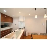 LDKの隣室にあった和室をLDKとつなげて、広いLDKを実現しました。 壁付けだったキッチンを対面キッチンにご提案。 オープンキッチンになること、また、ワンちゃんを飼われる予定、と伺ったので、調湿・消臭効果の高い、珪藻土、エコカラット等をご提案しました。最初からご興味を示されていた珪藻土に決定し、壁は珪藻土の塗り壁で、櫛目模様をつけました。 もと和室だった場所はTV鑑賞するリラックススペースとし、窓はモダンに縦長の上げ下げ窓に変更。他窓も、ペアガラスの窓に変更致しました。 照明は有田焼をルーツに持つ波佐見焼のペンダントライト、をご提案。また、他のライトも、使用目的に合わせて、調光色可能なものと不可能なもので場所による使い分けを致しました。窓廻りファブリックもトータルでコーディネートしています。