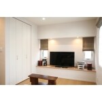 テレビを鑑賞するリラックススペースのリビングです。 珪藻土の壁が、明るく、気持ち良いです。