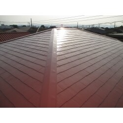 お客様からは築30年ということもあり、吹き替えもご検討頂きましたが、この年代のスレートはとても丈夫で、塗替えをおすすめしました。 棟笠木は少し心配でしたので、下地から交換し 錆に強いガンバリウムをご提案させて頂きました。