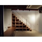 メインのサッシ扉・階段など部分的に木を使用することで、スタイリッシュでありながら、どこかあたたかみの感じられる様なギャラリーとしました。