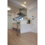 お客様より「キッチンでテレビを見られるようにしたい」とのご希望を頂いておりましたが、キッチンにテレビを設置するには、部屋を無駄に仕切ることになる為、キッチンと隣の和室を一つのLDK空間に間取り変更するプランをご提案。 このプランではご希望である”キッチンからテレビを見る”ことが出来、一つの空間にすることで光と風がキッチンへ届くようになります。キッチンは位置変更せず、サイドにカウンターを背面にカップボードを取付けました。リビングには電気床暖房を採用し、フローリングで仕上げました。洋室の北側には玄関からも出入りが出来るウォークインクローゼットを。玄関からの出入り口には片開きドアを取付け、洋室との通路には可動棚を設置しました。内部にはパイプハンガー、枕棚、引出を取付け、衣類や服飾品を全て仕舞えるようにしました。洋室には布団収納を設け、扉はミラー付に。LDKとの間仕切りには、3枚の引込戸を取付けました。 洗面室に取り付けられていた給湯器をベランダへ移設して空間をすっきりと使えるようにし、給水給湯管と水廻り設備も交換。内装はホワイトを基調にし、視覚的にも空間が明るく広く見えるようにしました。