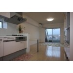 キッチンと隣の和室を一つのLDK空間に間取り変更。このプランでご希望である”キッチンからテレビを見る”を実現。 洋室の北側には玄関からも出入りが出来るウォークインクローゼットを。洋室とLDKとの間仕切りには、3枚の引込戸を取付けました。 洗面室に取り付けられていた給湯器をベランダへ移設し、給水給湯管と水廻り設備も交換。 内装はホワイトを基調にし、視覚的にも空間が明るく広く見えるようにしました。