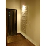 玄関は、玄関収納を交換し、内装を新たに。アクセントに調湿や脱臭機能を持つタイルを採用。玄関は吹抜けになっており、高さのある空間だったので、玄関収納下やエコカラット上部に照明を取付けることでより空間を引き立たせるようにしました。