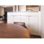 キッチン側の壁がなくなり、ダイニングを通して窓からの光が部屋の奥まで届くようになりました。エコカラットを張った壁面上部には間接照明としてラインライトを設置。晩餐をお洒落に演出します。