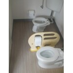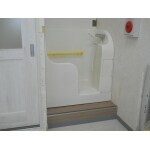 完全個室化になりました。 天井は開口して光を取り入れつつ、プライベートは守られるトイレ空間になりました。 中には、小便器1台・大便器2台設置。 トイレ横にはキッズ用シャワー台を設置しました。 安心・清潔な空間に生まれ変わりました。