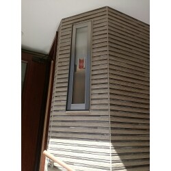 外壁に採光と通風の為のサッシを新設しました。 明るく、風通しも良く、気持ちの良い玄関になりました。
