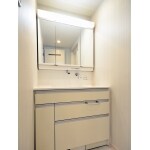 洗面化粧台はコンパクトな物へ交換し、すっきりとした仕上がりに。