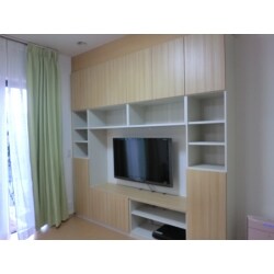収納量を増やし、でも圧迫感のないようにしました。お客様の中でプラン、仕様が決まっていらっしゃいました。ですので、イメージは崩さずによりご満足いただける提案を考えました。結論はフルオーダーからセミオーダーへの変更です。見た目や性能はほぼ変わりませんが、対費用効果を考えるとセミオーダーでも十分にご満足いただけると思いました。既製品のキャビネットを重ねて一体感のある収納になるものをご提案させていただきました。既存キャビネットの色となるべく近い色を探し、部屋に一体感が出るようにしました。