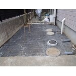 マンホールは割れてしまった所1箇所のみ下鋳鉄製のマンホールに交換、割れなかった他の3箇所は既存のコンクリート製のマンホールをそのまま使いました。 地面が土で車が汚れて使い勝手が悪いので、車が入る位置までコンクリートで固めました。 入口の門扉は動きが重かったので、戸車とガイドローラーを交換し、安価で動きが軽くスムーズな扉になりました。