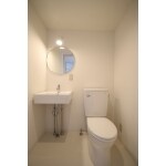 白以外に色味を使わず、明るいシンプルな空間づくりを心がけました。トイレと洗面を並べて配置することで、脱衣や洗濯物など使用できるスペースを確保し、サニタリールームとしての機能も持たせるようにしました。また将来的に浴室をリフォームした際に入口を変更することで脱衣所として動線も確保できるようなつくりに致しました。