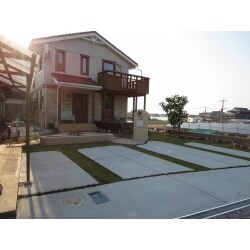 新築の駐車場、門周りと家族でガーデニングを楽しめるお庭にしてほしい。