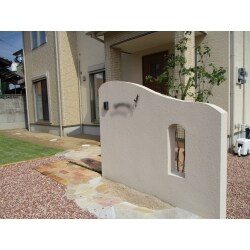 とても広い敷地で、駐車スペースがたくさんあって、どこに停めても大丈夫でしたが、今回の工事できちんと区別して駐車スペースとアプローチ、門塀を施工させていただきました。お家に合った可愛らしい雰囲気をお好みでしたので、乱形の自然石や古窯レンガを使用して、ナチュラルな雰囲気を心がけました。緑も入ってとても明るくなりましたね。